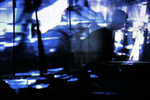 You are watching what the camera captured. The images were not manipulated in post-production by using colour correction, video filters or special effects. In these two videos, I videotaped myself moving objects within a space. Instead of playing the video on a monitor or projecting it on a flat screen, I project the video back into the same space. While the projection is playing, I enter the space and perform similar actions. This is also videotaped. This process of re-recording and re-projection is repeated to allow the 2-D video to interact with 3-D space, which causes the colour distortion seen.